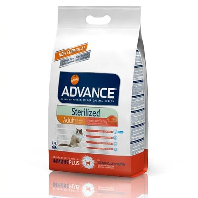 Thanks to the low-calorie and low-fat recipe of this Advance Cat Sterilised Sensitive, with a high proportion of protein and satiating fibre, it can help to support your cat’s weight management. It provides beneficial protein from highly-digestible salmon to support lean, strong muscles. The mineral content of this kibble has been ideally tailored to supports healthy urinary tract function.