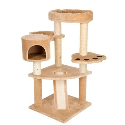 There are several sleeping areas on different levels. There is an attractive pawprint-shaped sleeping area as well as a comfortable den to hide away in.
