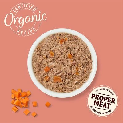And all that fantastic quality organic meaty and fishy greatness means this dish is as nourishing as it is delicious. Complete and balanced, it includes essential taurine for eye and heart health, vitamins and chelated minerals for all round health and Omega 3 and 6 to encourage healthy skin and fur. We’ve also added organic carrots to the mix to make it extra tempting, and for added vitamin A which is great for eye health. By going organic, you’re supporting high animal welfare standards, greater biodiversity and holistic, sustainable farming methods.