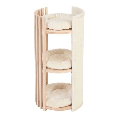 The scratching barrel offers three sleeping areas on top of each other, meaning that this accessory requires less space. It fits perfectly in the corner thanks to its round shape. The solid construction using real wood for the platforms and other elements makes this scratching barrel particularly stable and sturdy.