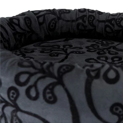- Stylish design with contrasting materials: Velour fabric with a silky flower pattern, combined with dark plush